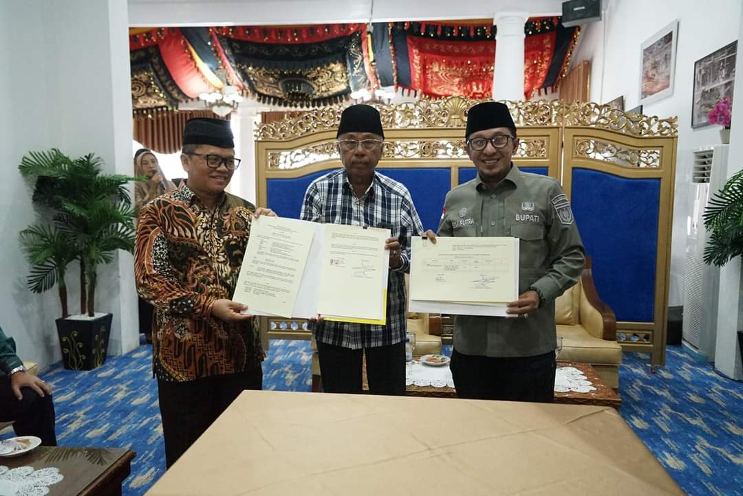 Bupati Tanah Datar Eka Putra menerima hibah tanah lebih kurang seluas 2.200 meter persegi dari Ninik Mamak Sikumbang 12 diwakili H. Arnis Saleh Dt. Malano Basa Nan Panjang bersama H. Muhardanus Dt. Sampono Kayo, Kamis (18/1/2024) di Indojolito Batusangkar.