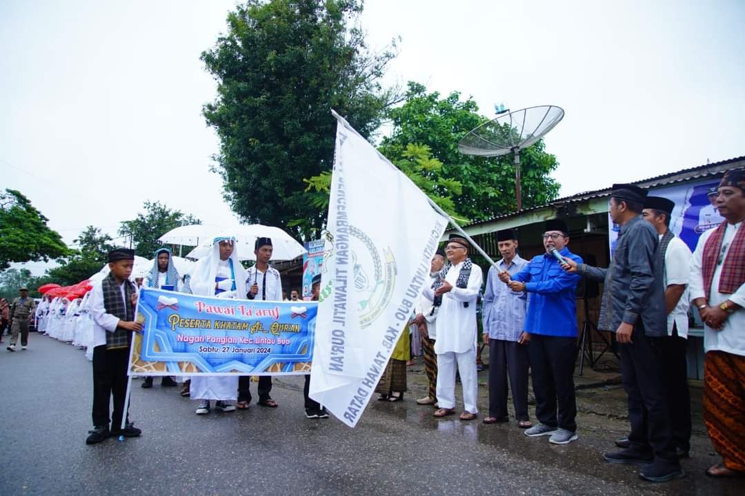 Bupati Tanah Datar Eka Putra menyampaikan apresiasi dan kebanggaan atas pelaksanaan khatam Al Qur’an di Nagari Pangian, Kecamatan Lintau Buo Utara, Sabtu (27/1/2024).