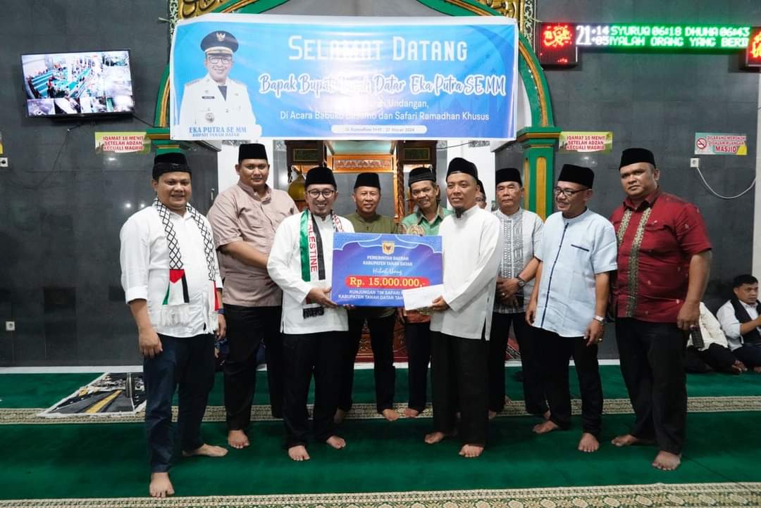 Pada saat tersebut Bupati Eka Putra juga serahkan bantuan berupa uang tunai sebesar Rp15.000.000, 1 (satu) unit vacum cleaner dan uang berbuka puasa bersama sebesar Rp1.600.000. yang diterima langsung pengurus masjid. (#901/FAN).