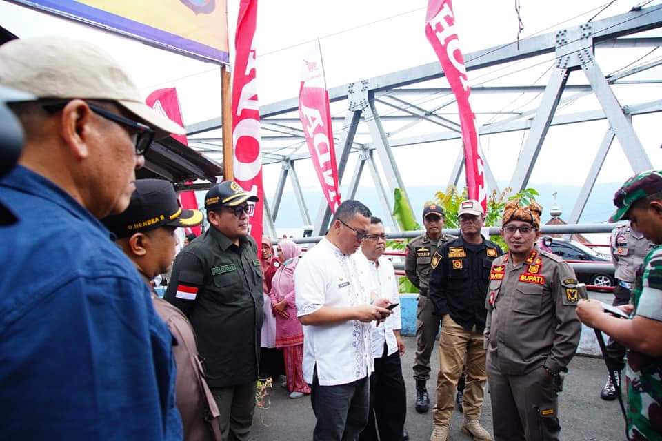 “Kita sengaja meninjau Pos Pengamanan dan Pelayanan sebagai bentuk perhatian kepada petugas. Ini juga mengambarkan bahwa petugas tidak merasa sendiri dalam menjalankan tugasnya,” ujar Bupati Eka Putra.