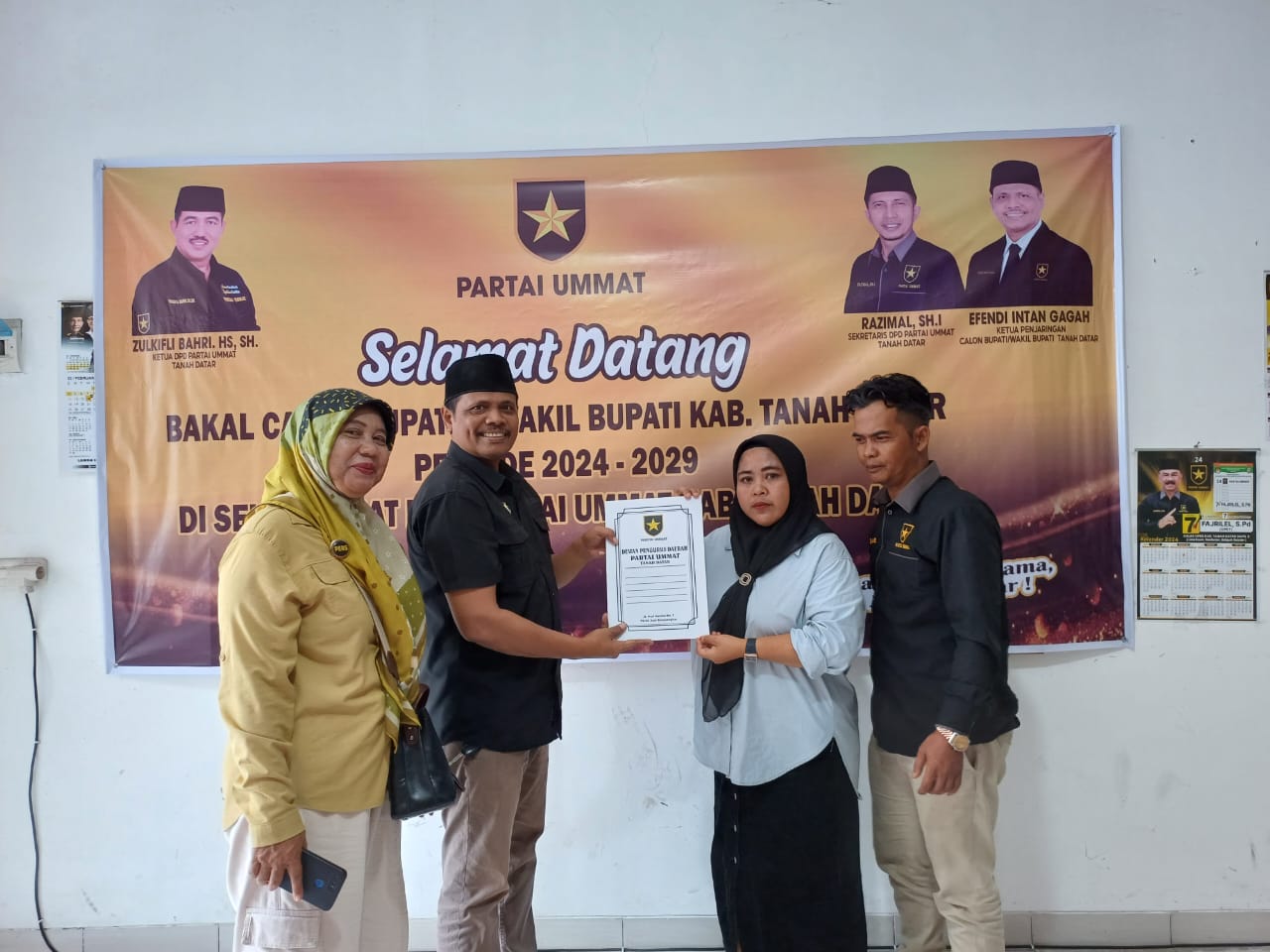 Tim Dodi Hendra mengambil formulir pendaftaran di DPC Partai Umat, Batusangkar Jln Hamka Parak Juar . Selasa (07/05/2024).