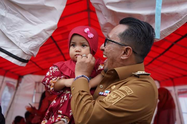 Sambil berdialog ringan, Bupati Eka Putra juga mengingatkan agar para pengungsi tidak sembarangan memberikan data kepada orang lain selain kepada pemerintah.