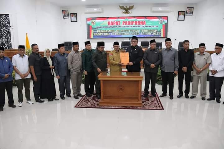Setelah beberapa kali mengadakan Rapat Paripurna, akhirnya Dewan Perwakilan Rakyat Daerah (DPRD) Tanah Datar bersama Pemerintah Daerah Kabupaten (Pemda) Tanah Datar sepakat menyetujui Rancangan Peraturan Daerah Anggaran Pendapatan dan Belanja Daerah (Ranperda APBD) Perubahan tahun 2024 menjadi Peraturan Daerah (Perda).